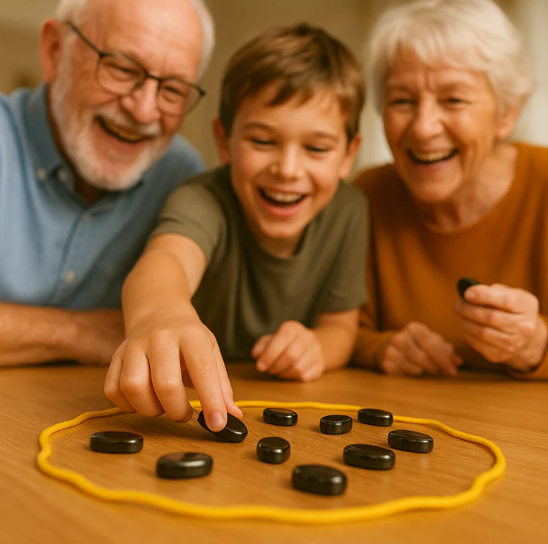 The solid board folds neatly in half and clicks shut. Your entire game stores securely inside—no separate boxes or searching for lost pieces. Take your game to the community center, on vacation, or to a friend's house with incredible ease.