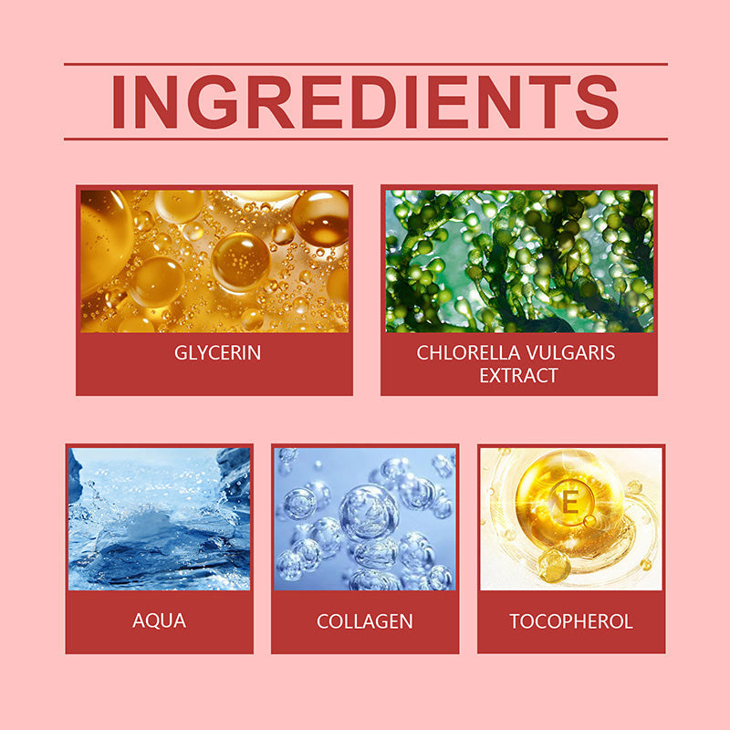 Ingredients: Water, Glycerin, Chlorella Extract, Collagen, Vitamin E